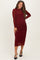 Burgundy Shimmer Mesh Long Sleeve Ruched Maternity Midi Dress