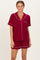 Experience cozy elegance with our Burgundy Short Sleeve Button-Down Shirt and Shorts Set. Crafted from soft, breathable fabric, this set offers ultimate comfort for lounging or sleepwear. The rich burgundy hue is beautifully accented with contrasting white piping along the collar, sleeves, pocket, and shorts, adding a touch of classic charm. The button-down shirt features a relaxed fit with a chest pocket, while the matching shorts provide an easy elastic waistband for a perfect fit. Ideal for warm nights or casual days at home, this set combines style and comfort effortlessly. Perfect your downtime wardrobe with this must-have pajama set!