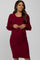 Burgundy Soft Brushed Waist Tie Bubble Sleeve Maternity Dress