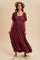 Burgundy Swiss Dot Ruffle Trim Maxi Dress