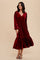 Burgundy V-Neck Ruffle Hem Velvet Midi Dress