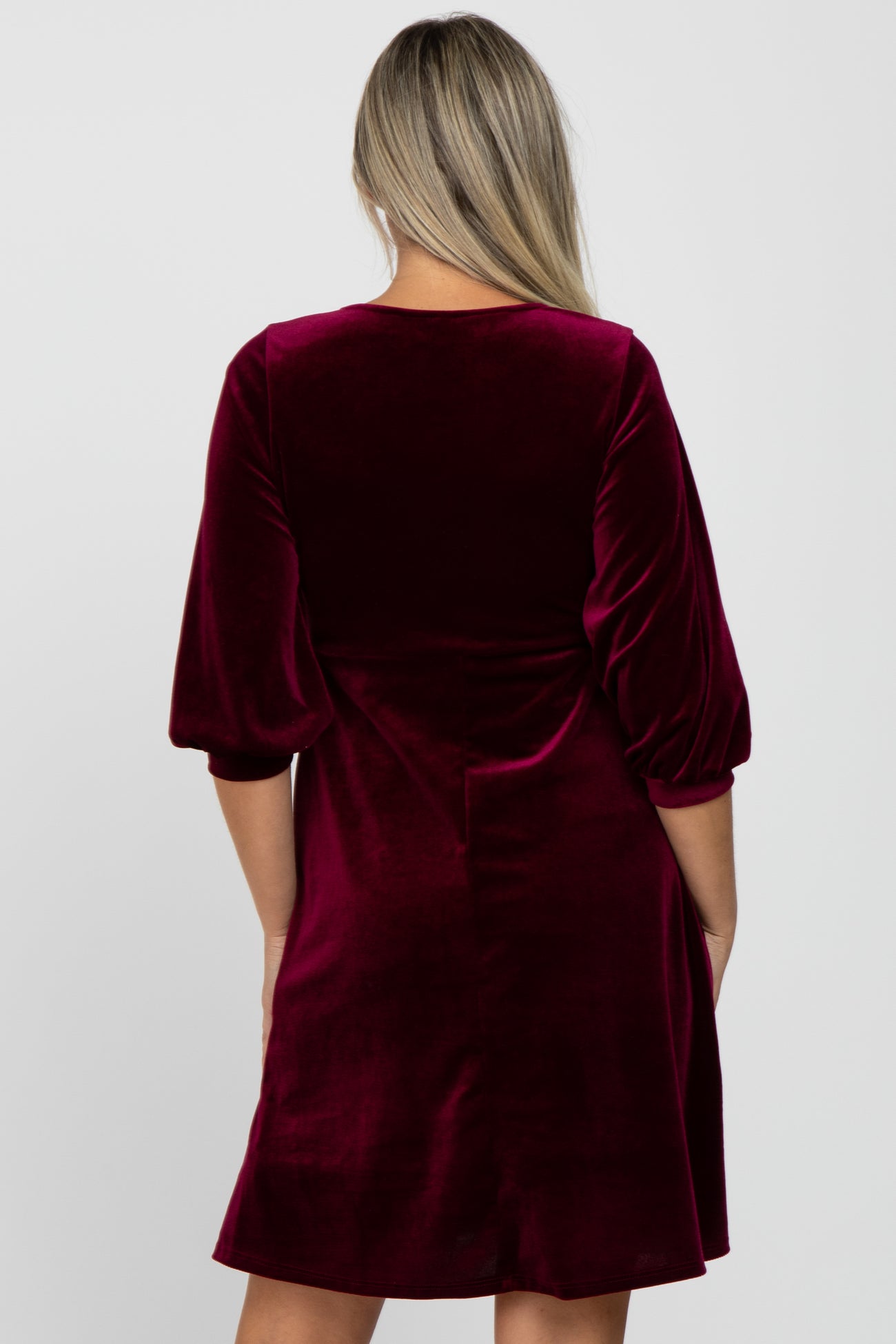 Burgundy Velvet Wrap Front Babydoll Maternity Dress