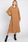 A solid hued maxi dress featuring front buttons, long sleeves, front pockets, side slits and a collared neckline.