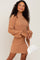 Camel Fuzzy Knit Puff Sleeve Sweater Dress