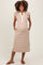 Camel Multi-Striped Button Up Ruffle Sleeve Maternity Midi Dress