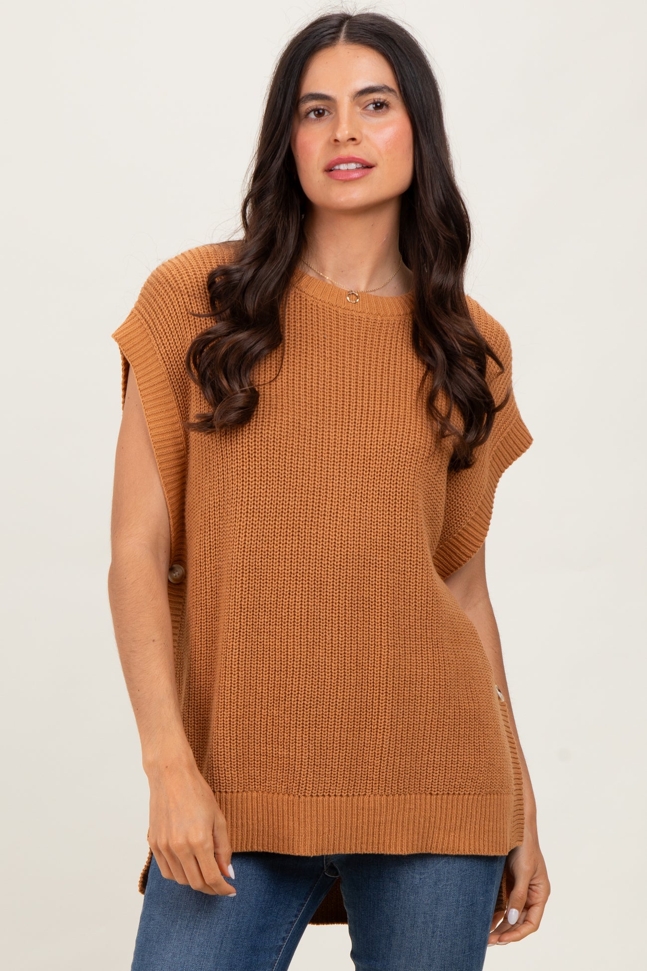Camel Oversized Side Button Sweater Vest