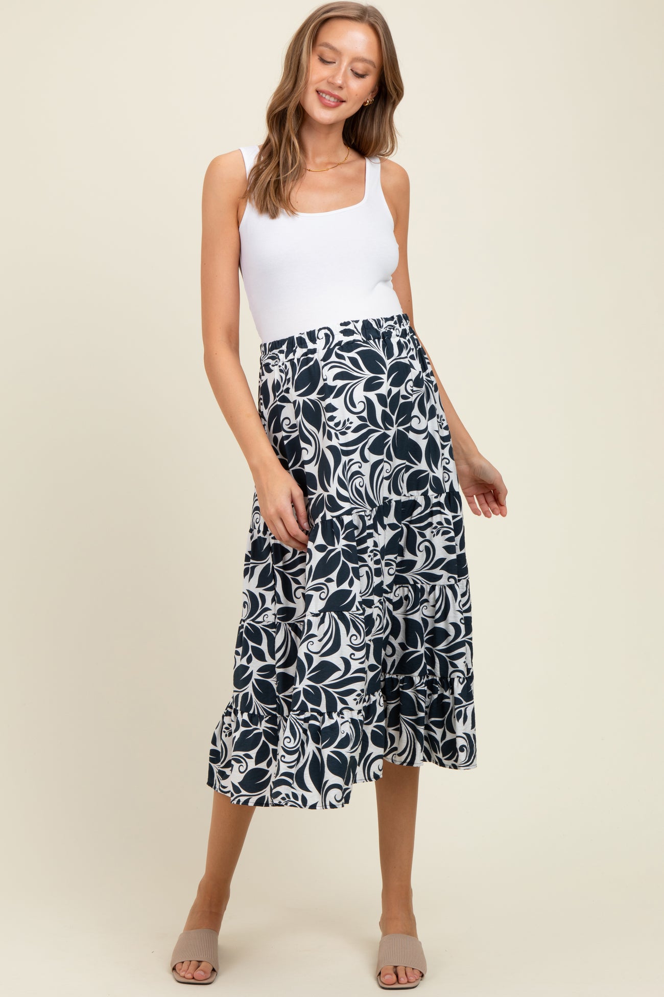 Charcoal Floral Tiered Maternity Maxi Skirt