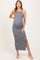 Charcoal Ribbed Fitted Side Slit Maternity Midi Dress