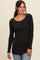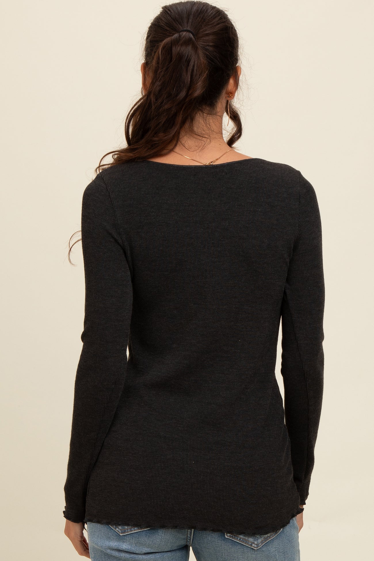 Charcoal Ribbed Knit Long Sleeve Lettuce Hem Top
