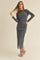 Charcoal Shimmer Mesh Long Sleeve RuchedMidi Dress