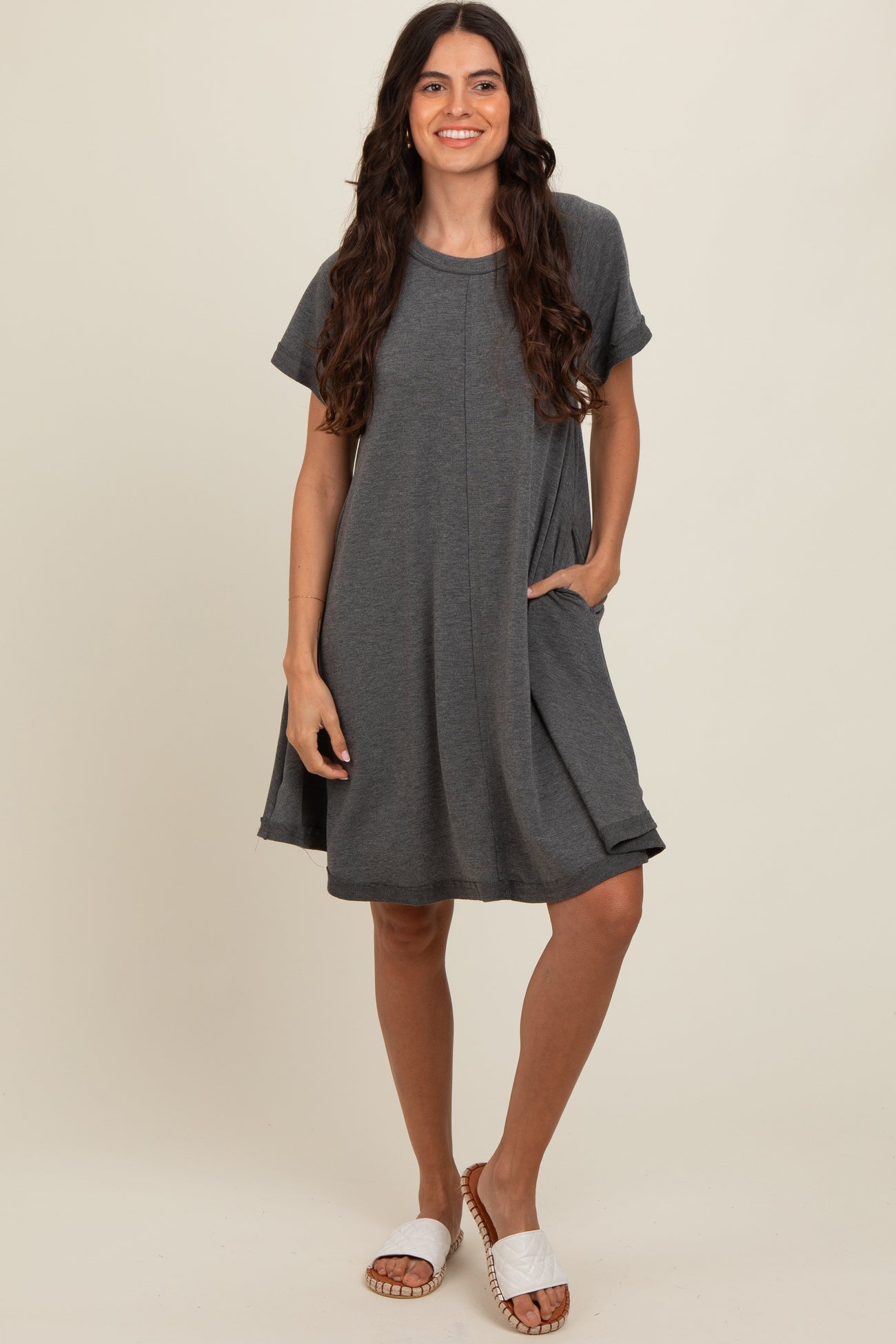 Charcoal Solid T-shirt Maternity Mini Dress