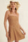 Coffee Waffle Knit Exposed Seam Cami Strap Mini Dress