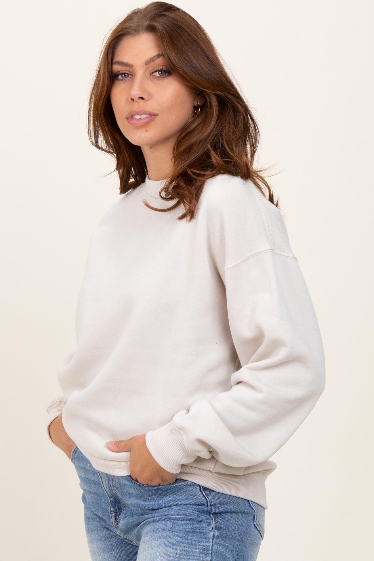 Cream Fleece Crew Neck Relaxed Fit Sweatshirt