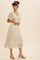 Cream Floral Chiffon Flutter Sleeve V Neck Midi