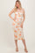 Cream Floral Ruched Low Tie Back Midi Dress