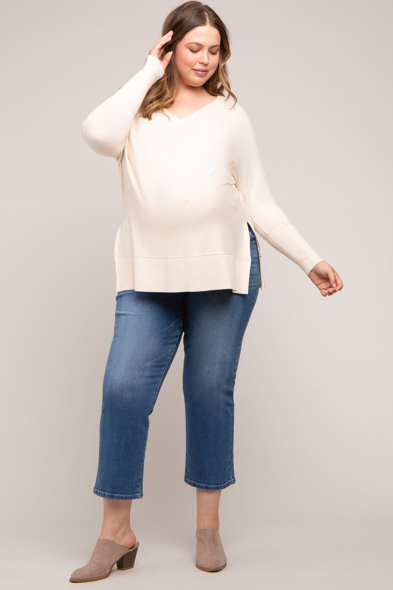 Cream Knit Long Dolman Sleeve Plus Maternity Top