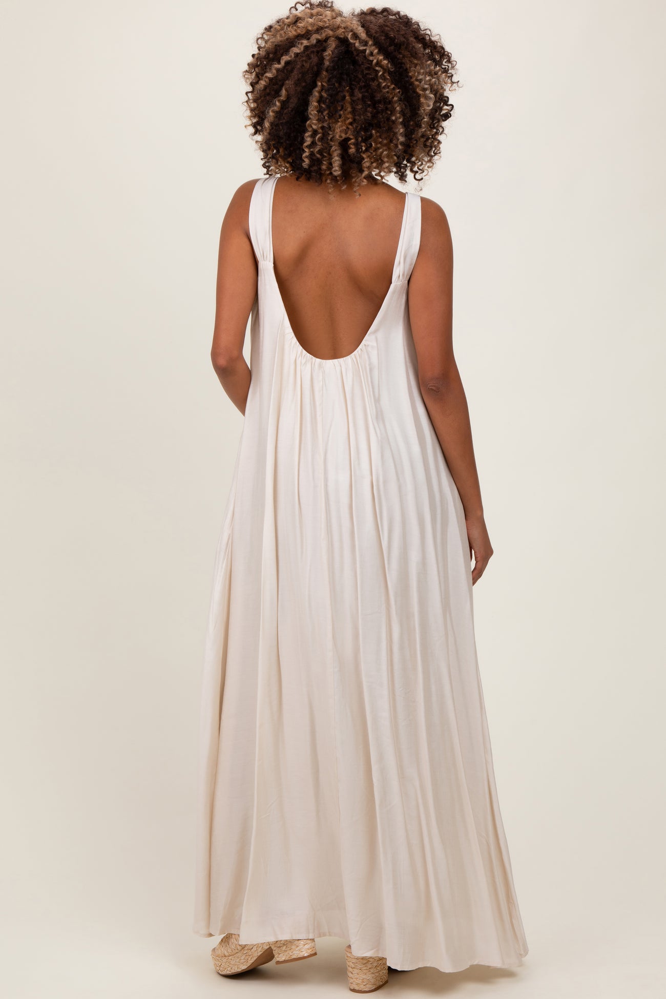 Cream O-Ring Strap Scoop Back Maternity Maxi Dress