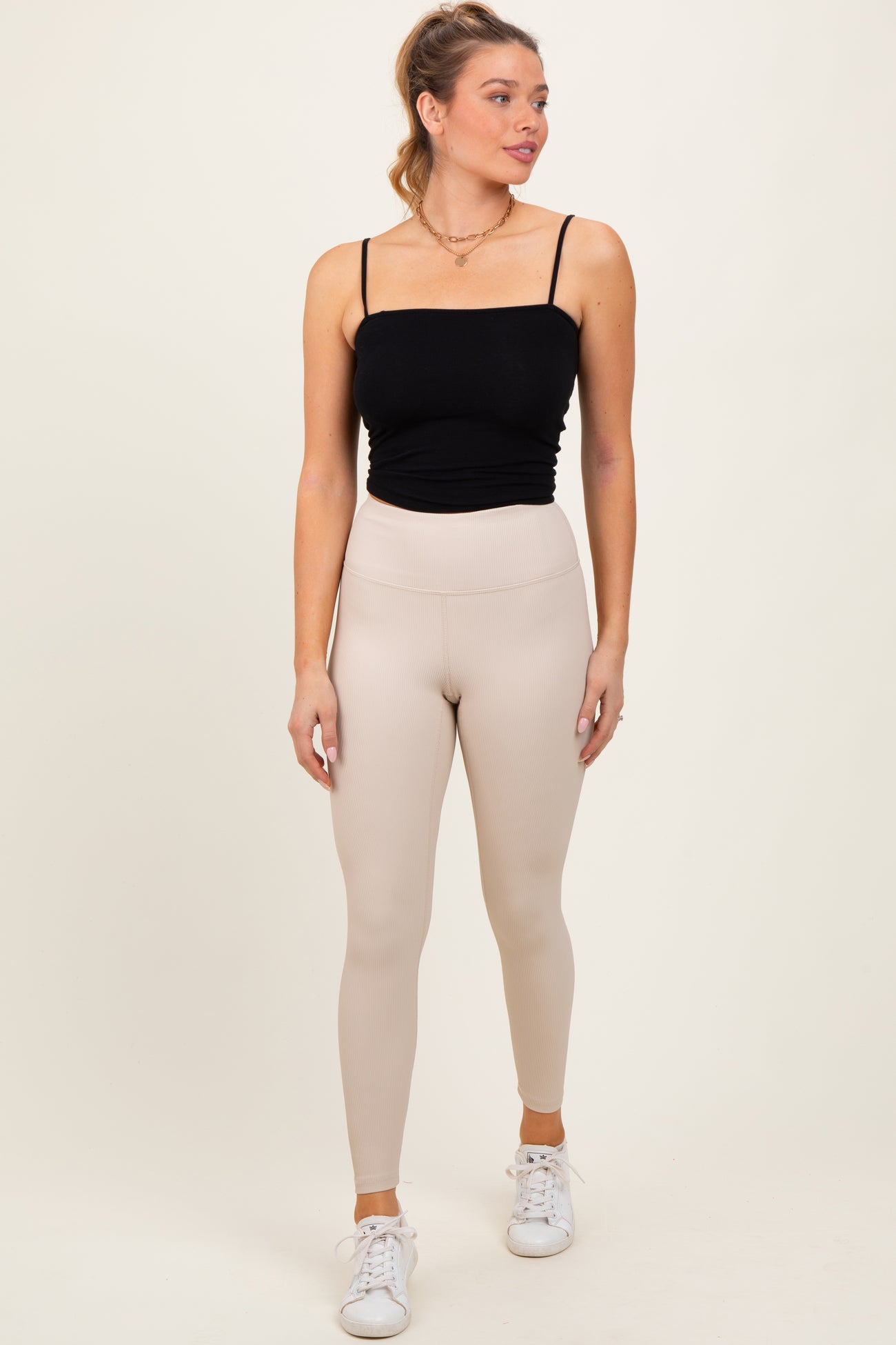 Cream Ribbed Leggings