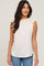 Details A ribbed top with a ruffled mock neckline, flounce sleeves, and a rounded hemline. Content + Care