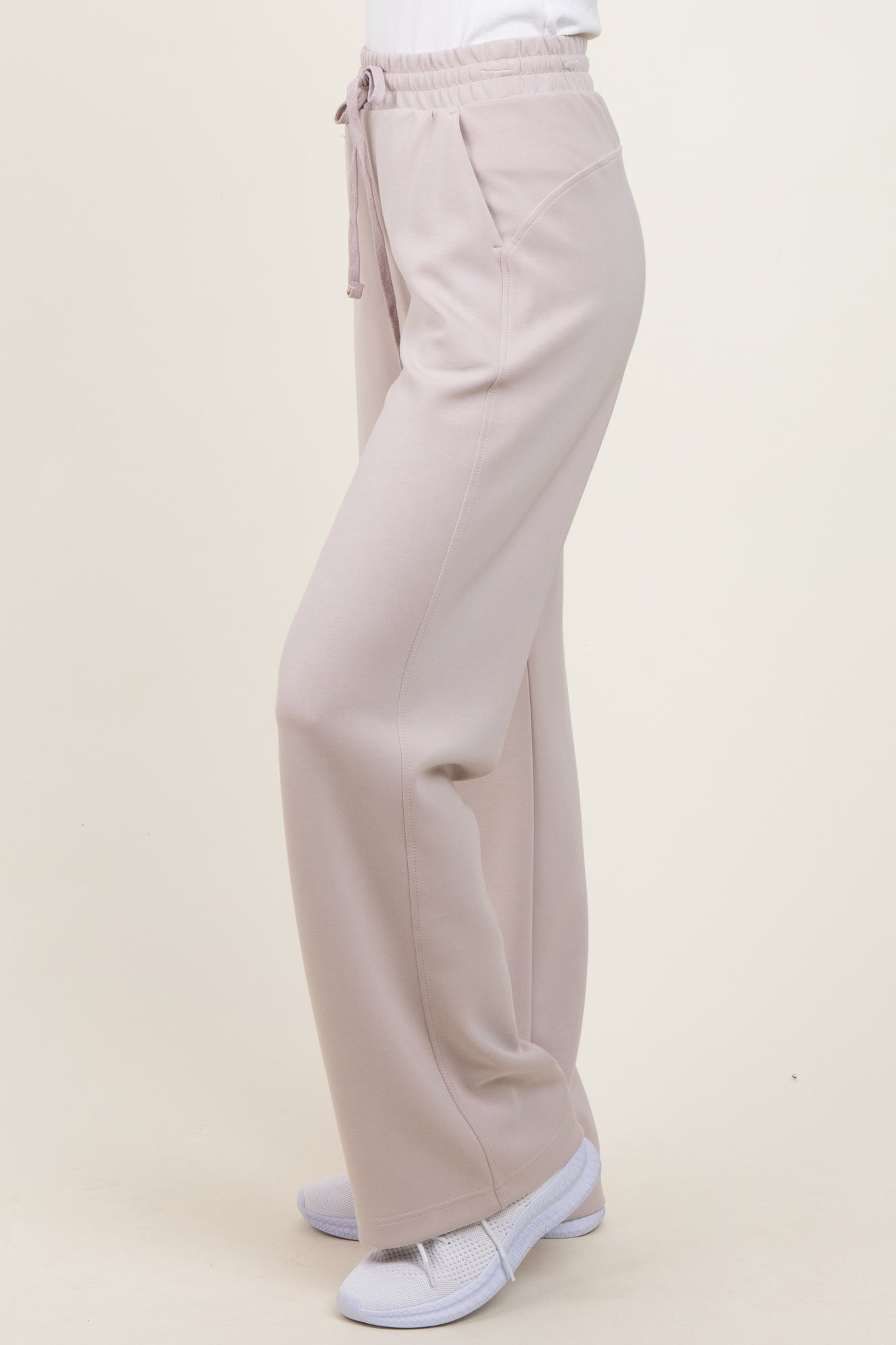 Cream Straight Leg Drawstring Sweatpants