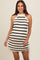 Cream Striped Sleeveless Knit Ruched Maternity Dress