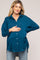 A striped maternity top with a collar, front functioning buttons, long drop shoulder sleeves, and a curved hi-lo hem.