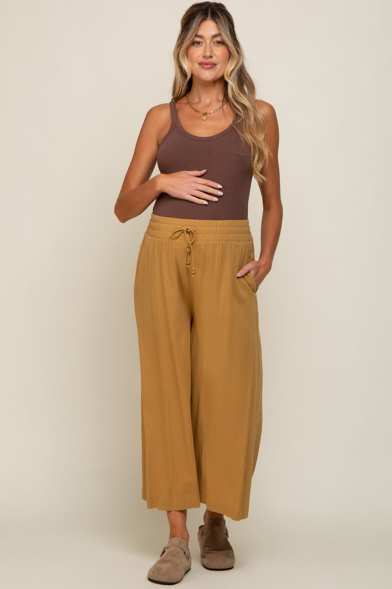 Dark Yellow Drawstring Wide Leg Maternity Pants
