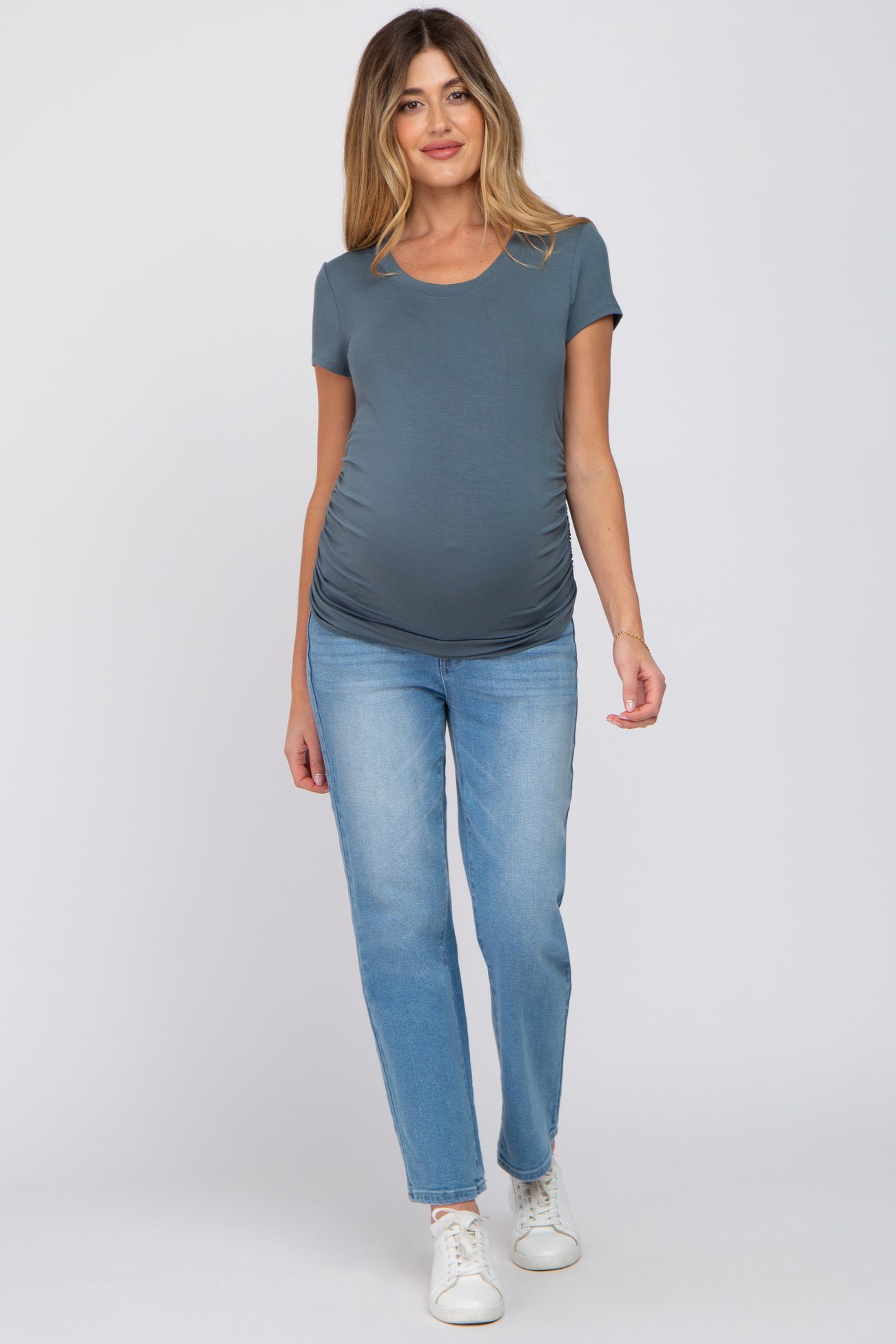 Deep Teal Basic Short Sleeve Maternity Fitted Top