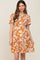 A floral print maternity dress featuring a smocked bodice, short sleeves, side pockets, and a gathered bottom tier.