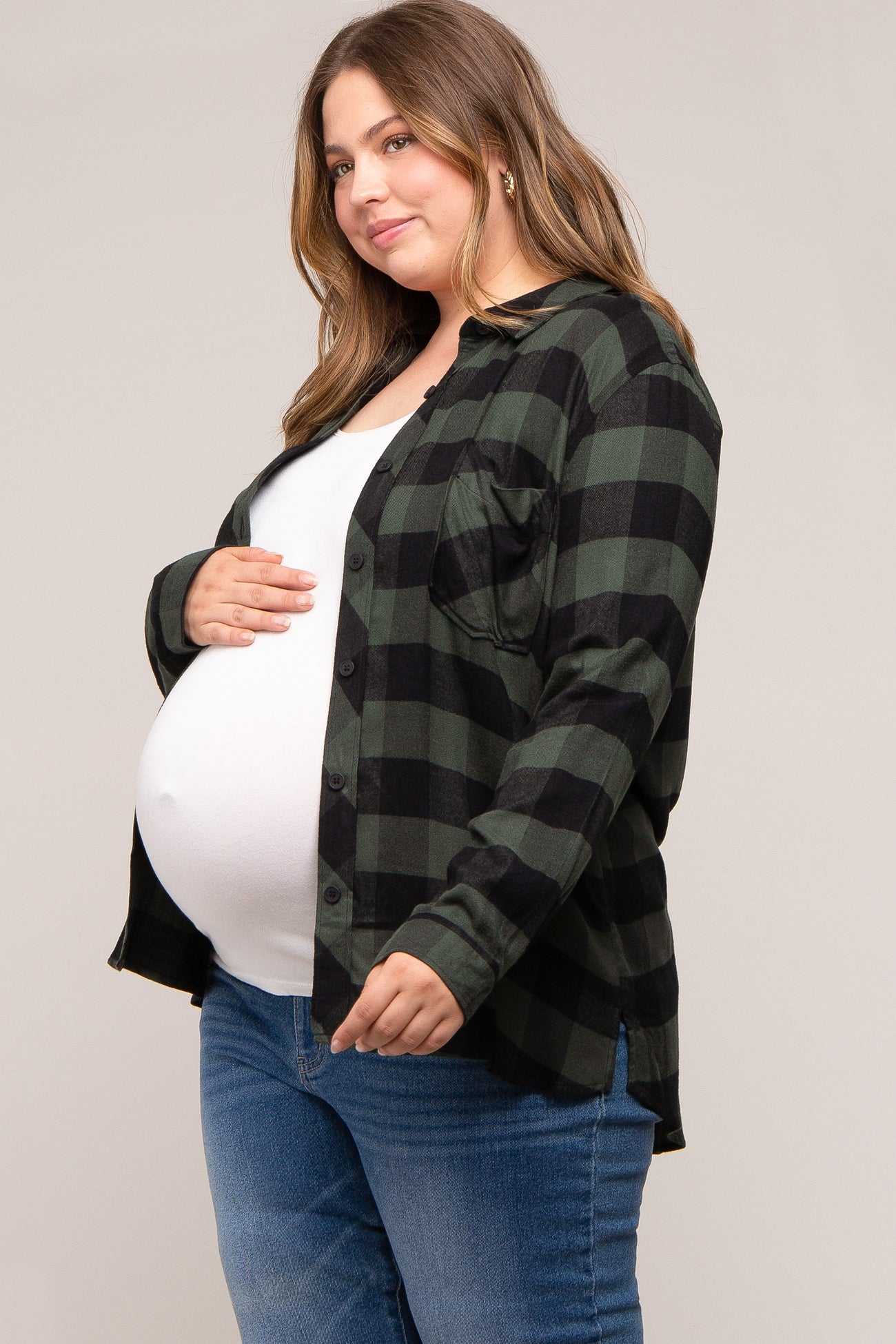 Forest Green Checkered Maternity Plus Long Sleeve Button Down Top