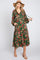 Forest Green Floral Ruffle Neck Tiered Midi Dress