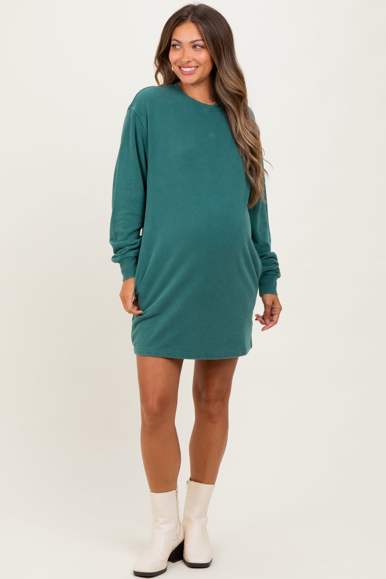 Forest Green Mint Mineral Wash Oversized Maternity Sweatshirt Mini Dress