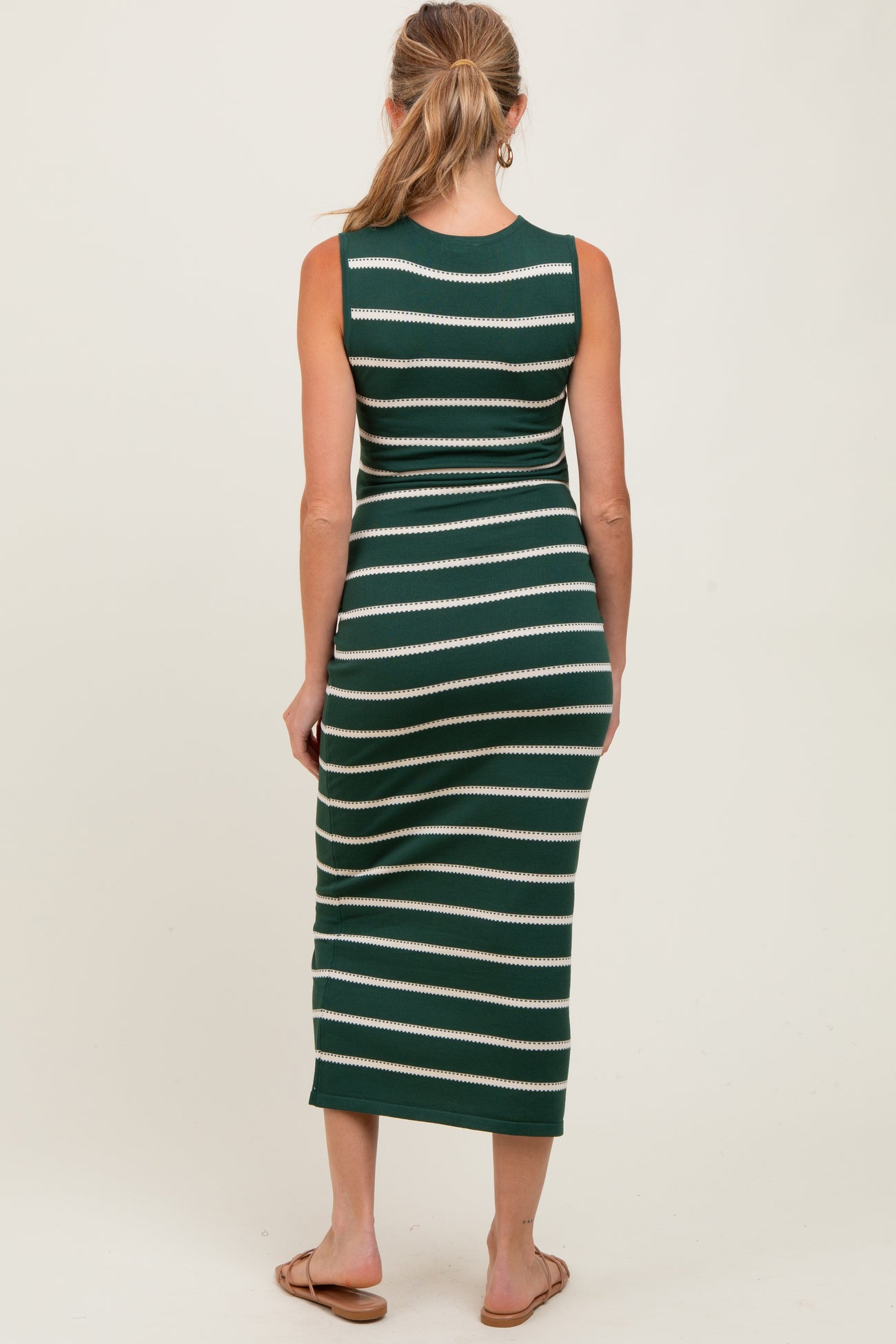 Forest Green Striped Sleeveless Knit Maternity Midi Dress