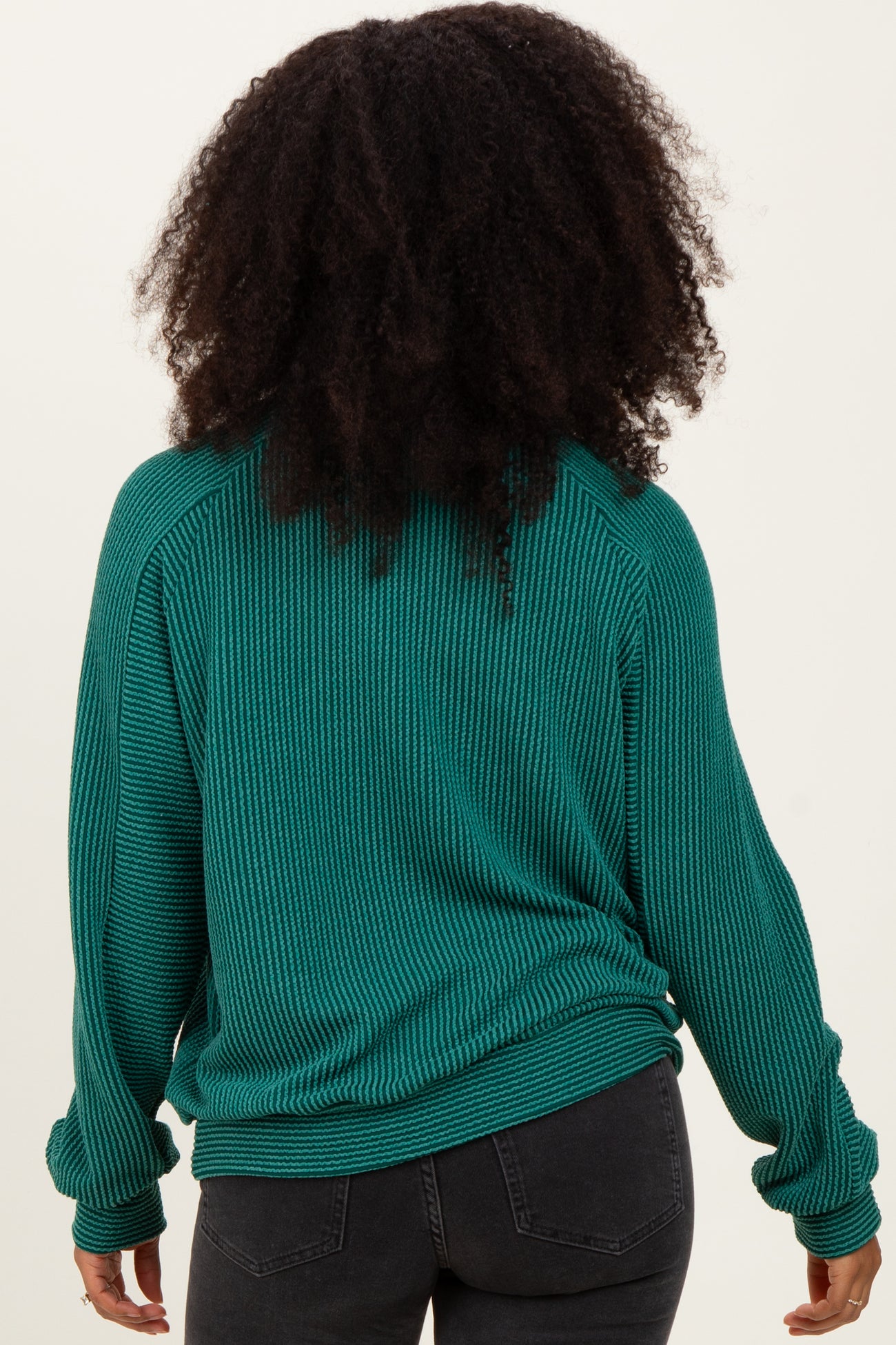 Elevate your casual wardrobe with our Forest Green Textured Rib Knit Pullover. Crafted from a cozy ribbed knit fabric, this pullover offers both warmth and style with its rich forest green hue. Featuring a relaxed fit, long raglan sleeves, and a subtle V-detail at the neckline, it’s perfect for layering or wearing on its own. Soft, breathable, and versatile, this pullover pairs effortlessly with your favorite jeans or leggings for a laid-back yet polished look. Ideal for cooler days, it’s a must-have staple for effortless everyday comfort and timeless style. Available in multiple sizes.