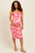 Fuchsia Floral Mesh Ruched Maternity Midi Dress