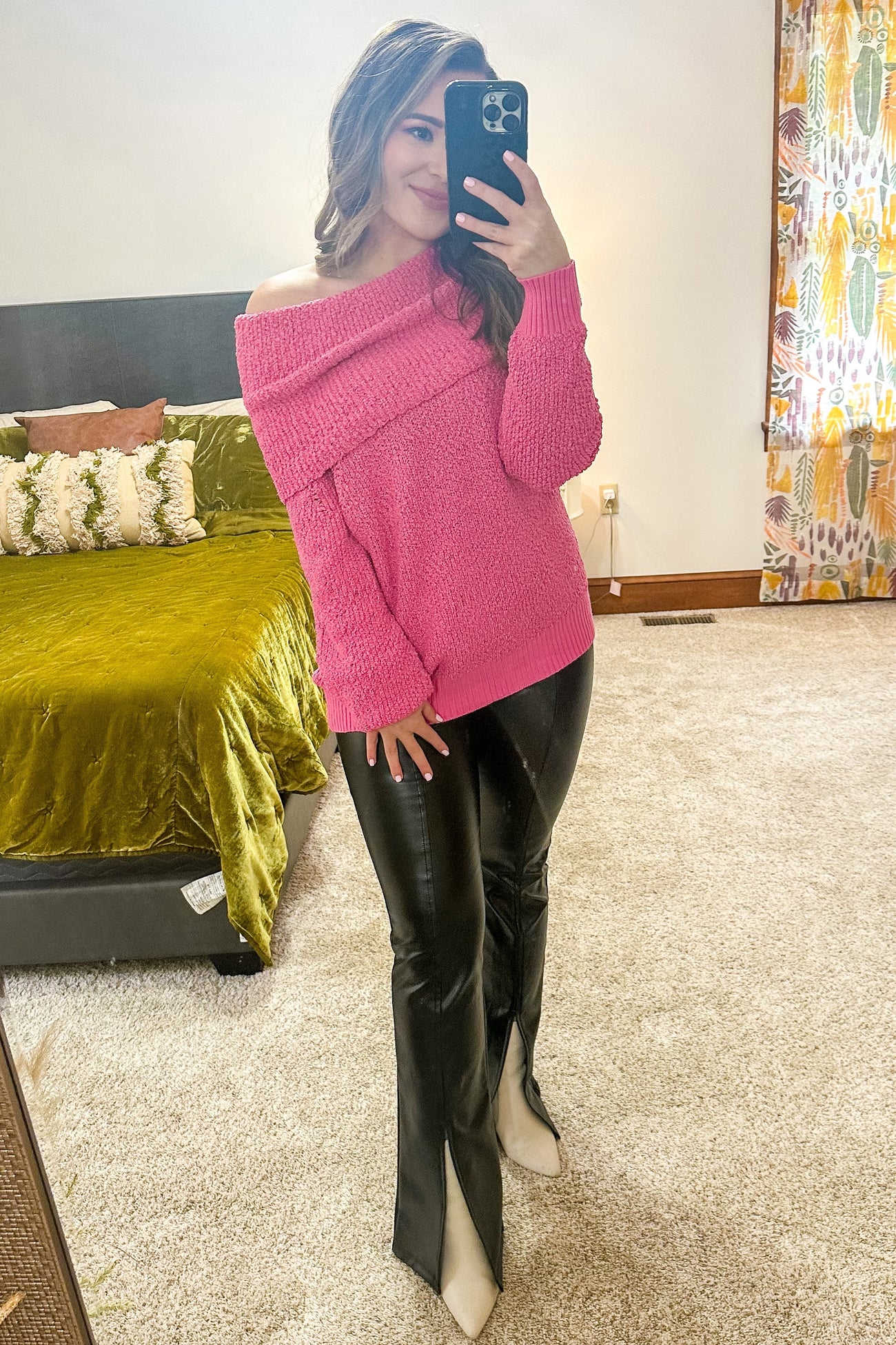 Fuchsia Foldover Off Shoulder Sweater