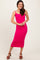 Turn heads effortlessly in our Fuchsia Ribbed Bodycon Midi Dress. This vibrant dress features a flattering ribbed texture and a figure-hugging silhouette that accentuates your curves. With adjustable spaghetti straps and a classic midi length, it offers both comfort and style. Perfect for day-to-night wear, pair it with heels for a chic evening look or sandals for a casual outing. Made from a soft, stretchy fabric that moves with you, this dress is a must-have staple for your wardrobe. Embrace bold color and sleek design with this versatile, feminine piece.