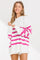 A striped knit, oversized sweater featuring a crew neckline, long sleeves and side slits.