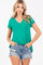 Elevate your everyday wardrobe with this essential V-neck short sleeve top. Crafted from a soft, breathable fabric, it offers all-day comfort and a flattering fit. The classic V-neckline adds a touch of sophistication, while the relaxed silhouette makes it perfect for layering or wearing on its own. Pair it effortlessly with jeans, shorts, or skirts for a casual yet polished look. Whether you're heading out for a casual day or lounging at home, this versatile top is a must-have staple that combines style and comfort in one simple design. Easy to care for and perfect for any season.