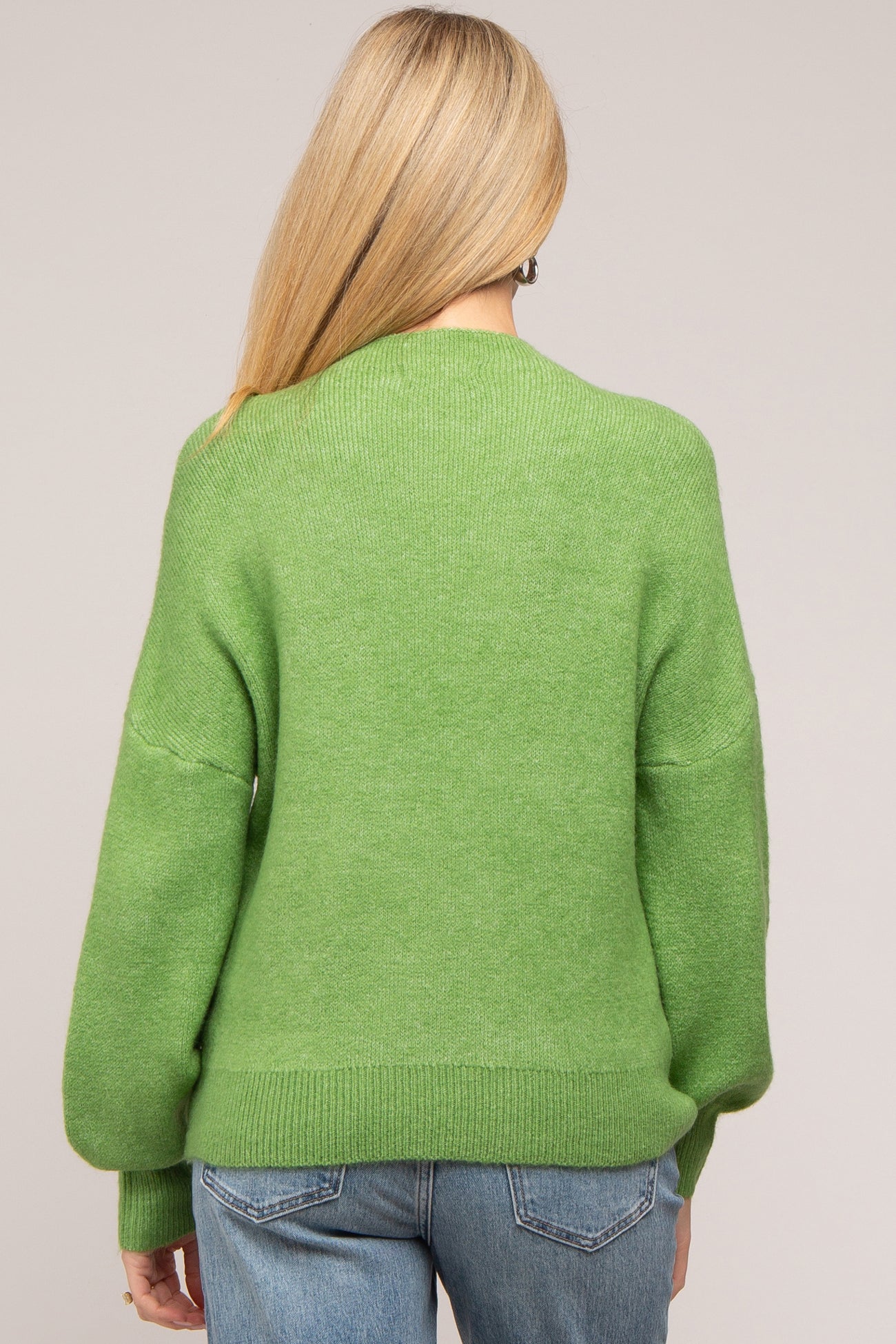 Green Bubble Sleeve Maternity Sweater