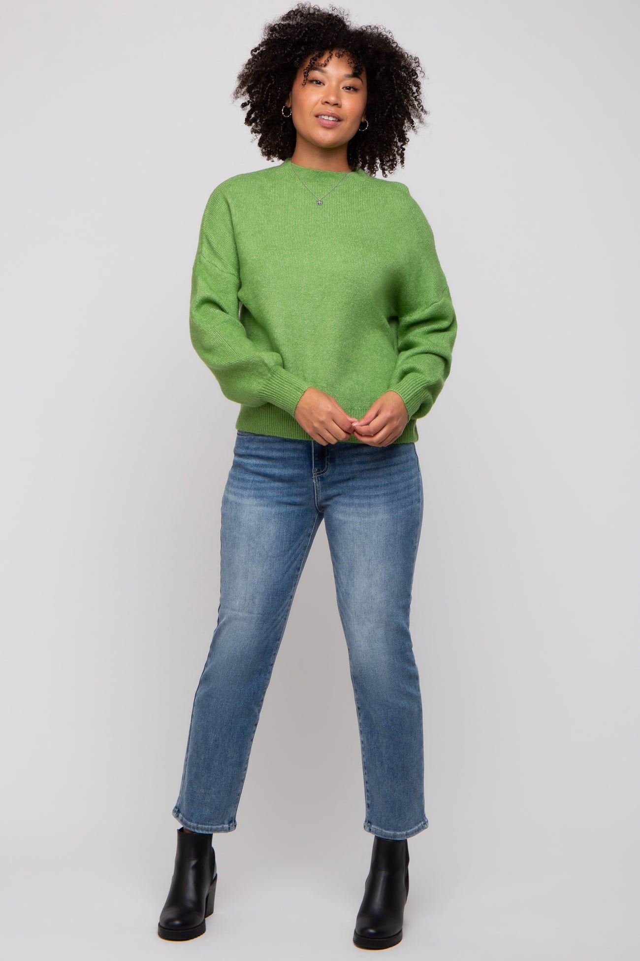 Green Bubble Sleeve Sweater