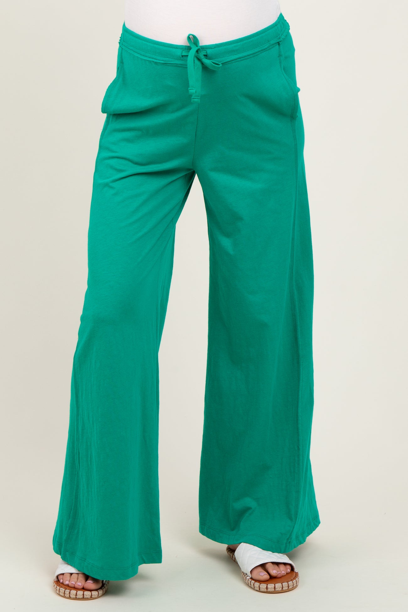 Green Drawstring Wide Leg Maternity Lounge Pant