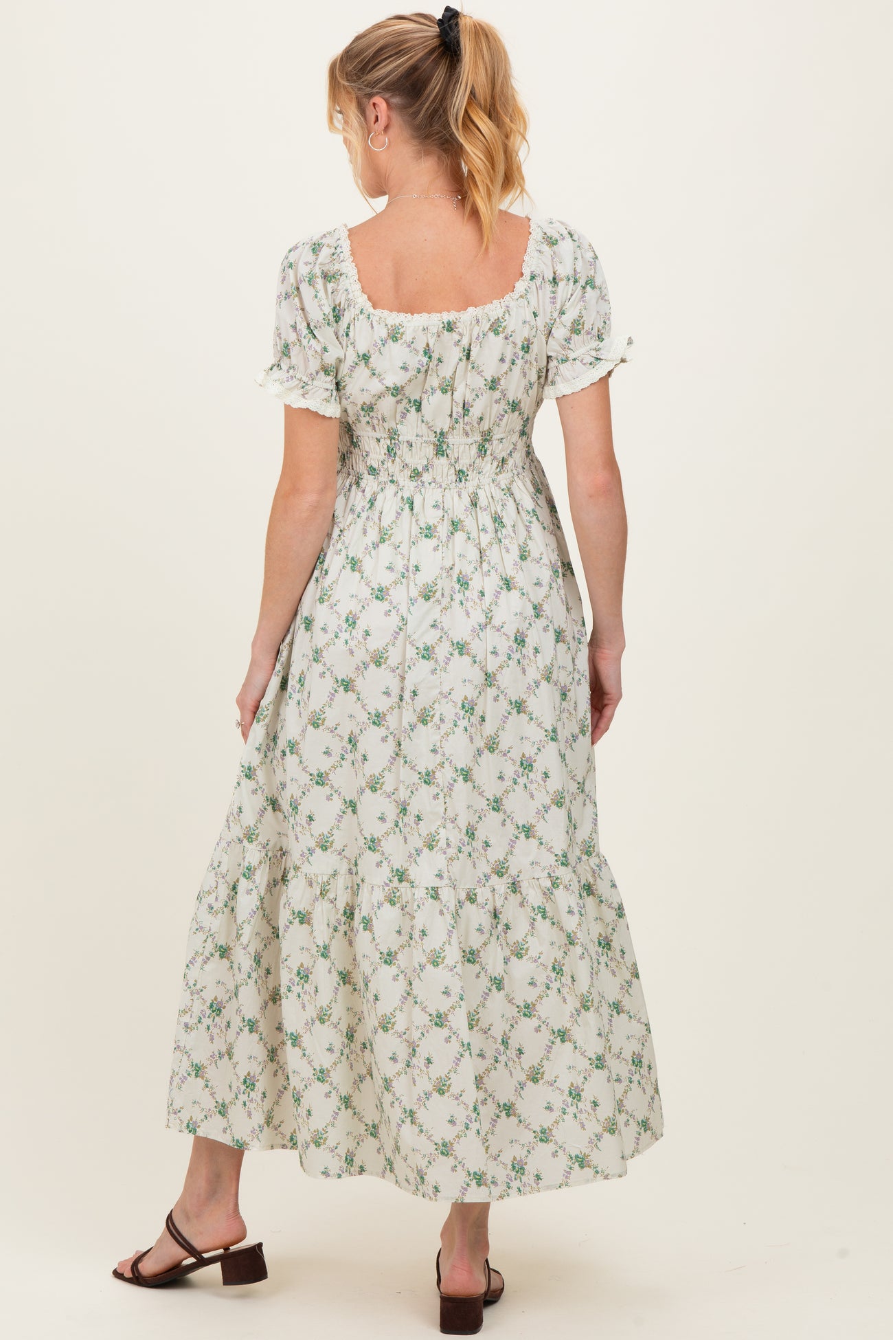 Green Floral Smocked Maternity Maxi Dress