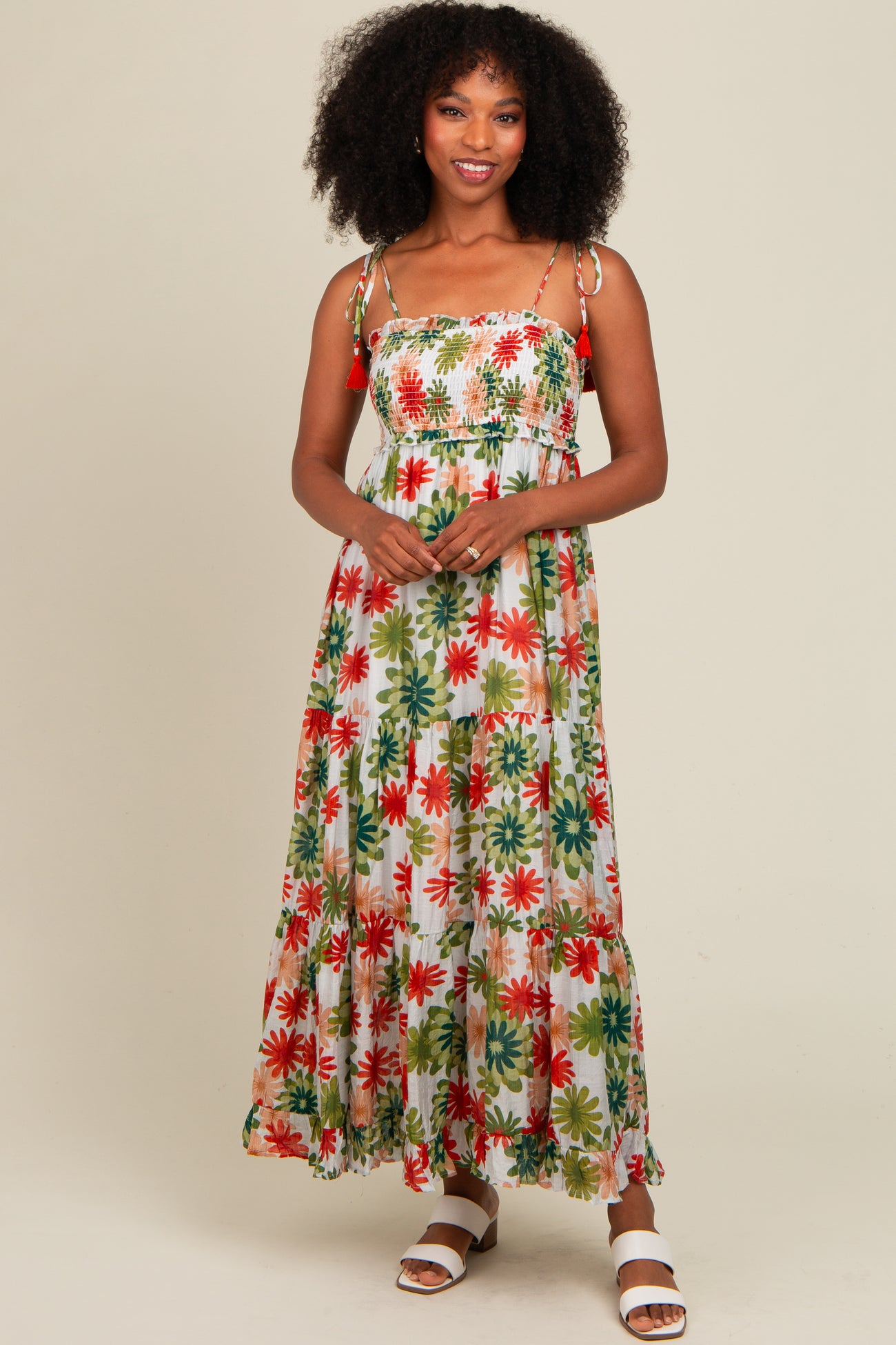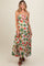 Green Floral Smocked Shoulder Tie Maternity Maxi Dress