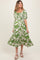 Green Floral Smocked Triple Front Tie Maternity Midi Dress