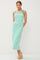 A stripped ribbed dress with a square neckline, low back, back self tie, and slit on the back.