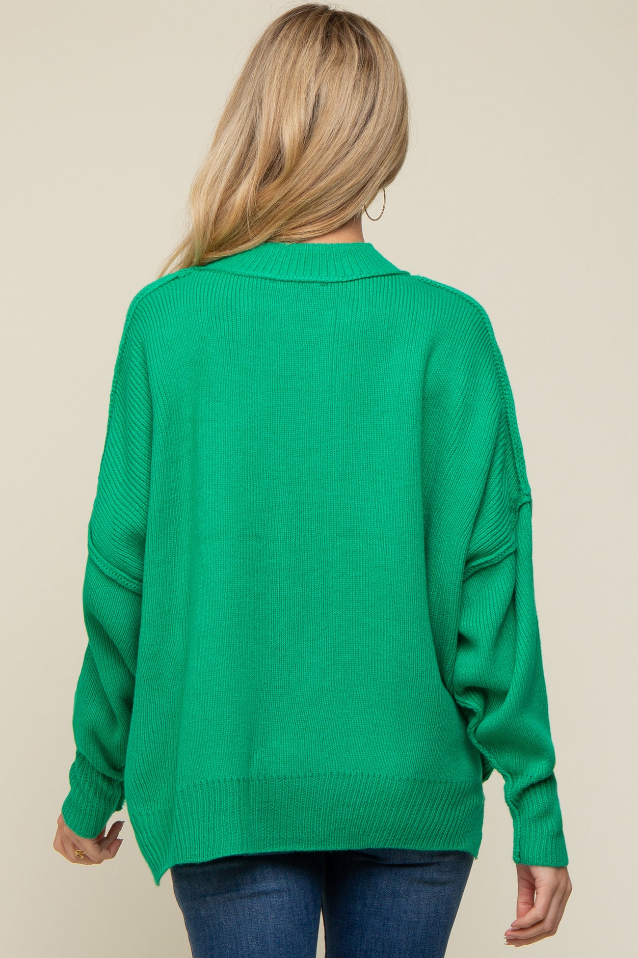 A knit maternity sweater featuring long sleeves, side slits and a mock neckline.