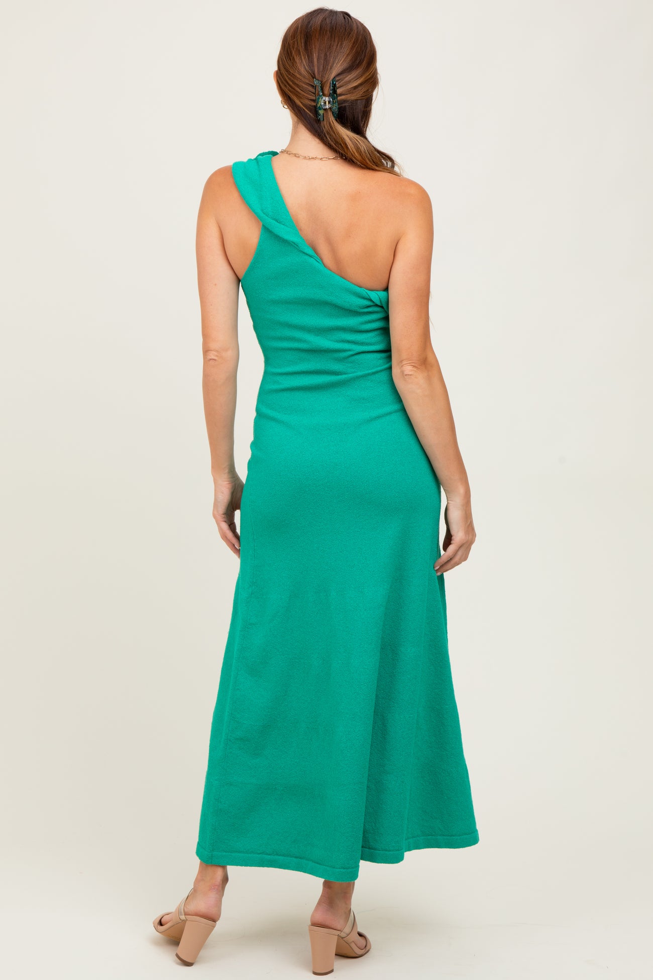 Green One Shoulder Knit Sleeveless Maxi Dress