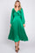 Green Satin Wrap Top Midi Dress