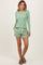Green Striped Ribbed Long Sleeve Top Drawstring Short Set